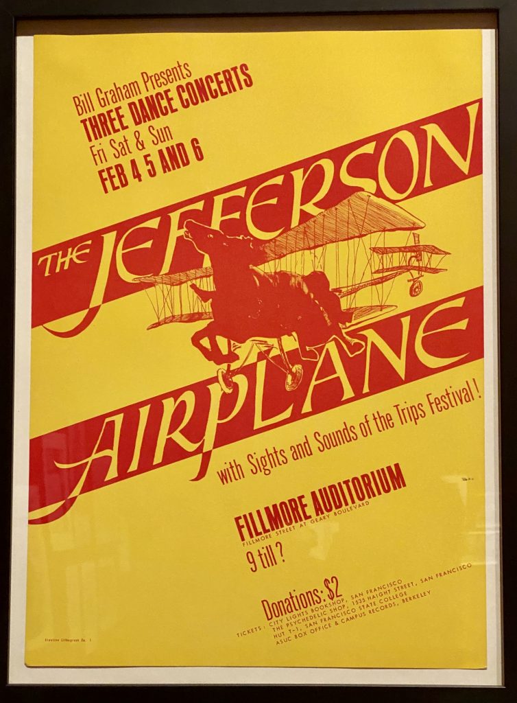 The exhibitions includes many posters for the Fillmore shows, with Graham also embracing the counterculture for ‘60s-era artwork. There are also rock & roll artifacts, including Janis Joplin’s tambourine and microphone from a Fillmore performance, a guitar and bag belonging to Carlos Santana, and a Pete Townshend guitar.