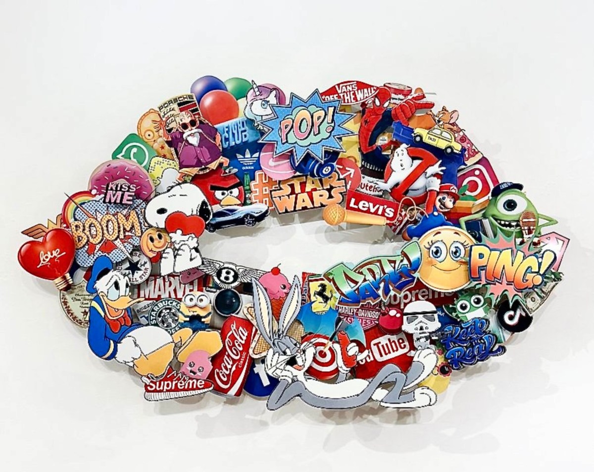 In pursuit of innovation, she reconfigured her signature motifs—such as the “mouth,” “heart,” and “candy” emblems—by deconstructing them into precisely laser-cut components. These elements, numbering up to 80 in a single composition, undergo a rigorous sublimation process that enhances their chromatic and textural vibrancy.