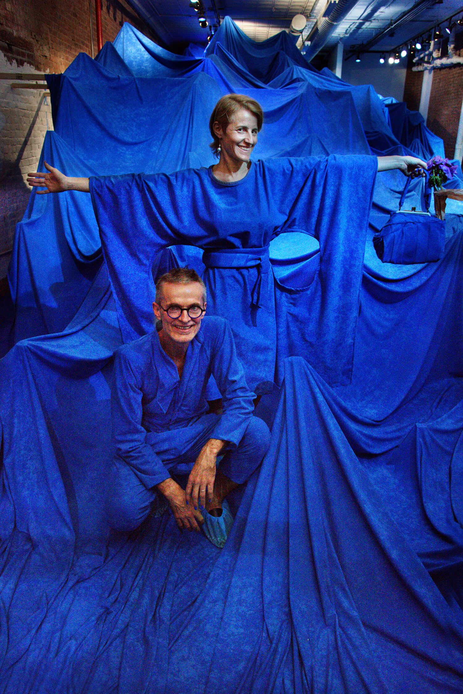 Kronschlaeger has become part of his own work this time around, wearing a blue velvet jumpsuit designed and made by his wife, clothing designer and producer Florencia Minniti, who also acts as his studio manager. Blending into the scenery, he contemplates his creation with the knowledge that the piece is part of an ongoing process. “It will take a while to figure out what I’ve created,” he muses. “There is still something that is a little unknown to me. I’m still trying to decipher and articulate what it is that I did.”