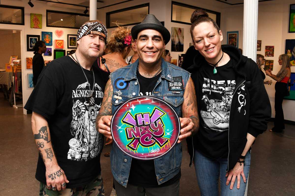 DJ Sindi Halfrats — a founder of NYC faves The Lunachicks — provided the night’s soundtrack, but didn’t take the easy way out. Her all-vinyl set included many popular bands (The Clash, NY Dolls, The Sweet) but not their more familiar tunes. Additionally, this Soho opening was the rare one that included the not particularly soothing sounds of Nina Hagen, the Bad Brains, and the Plasmatics.