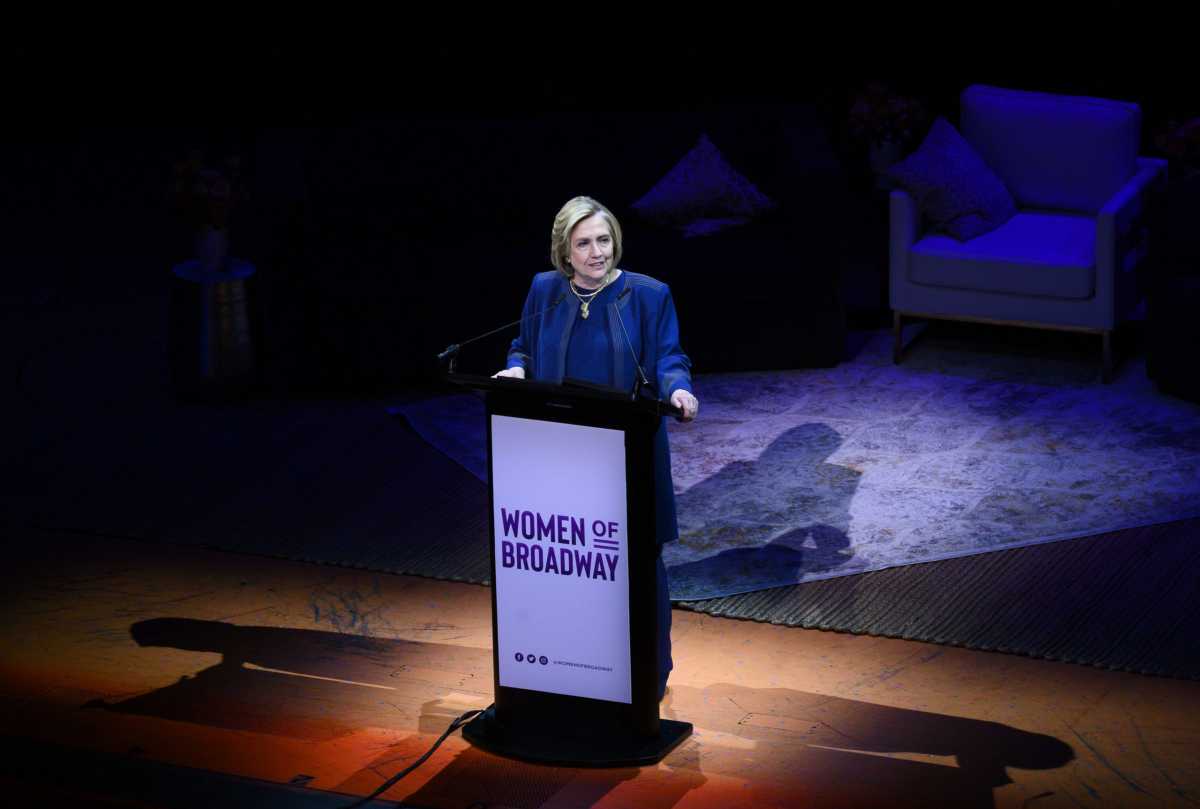 Hillary Clinton became a last-minute addition to the lineup of speakers at Women’s Day on Broadway 2020, held on Tuesday afternoon at the New Amsterdam Theatre. In a closing keynote address, Clinton highlighted the diversity and inclusivity of recent Broadway seasons and emphasized the role of live storytelling in encouraging more opportunities for women in society. “Nothing is more important than imagining and then inventing the future that we want,” she said. Clinton also spoke of the personal relief that going to Broadway shows has provided for her since the 2016 election.