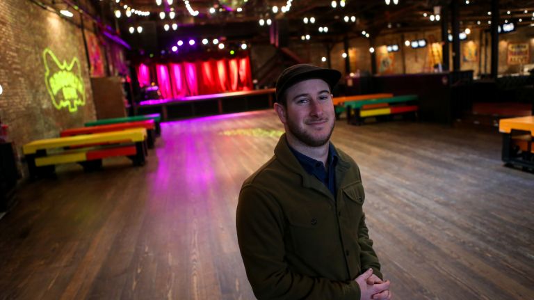 The venue, formerly home to an ironworks-foundry building in the 1880s, also stands out with a unique carnival-style interior. Coney Island-esque banners, nearly 100 hand-painted knockdown punks and “shoot-em-up” game targets — all custom made — adorn the walls. The main bar is made of original and recycled wood from the Coney Island boardwalk and the concert stage floor was constructed with old truck tires.