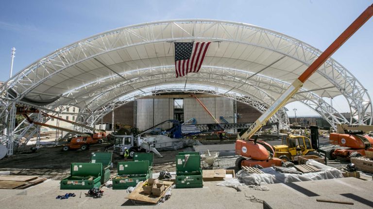 Coney Island amphitheater looms at the boardwalk near former Childs Restaurant