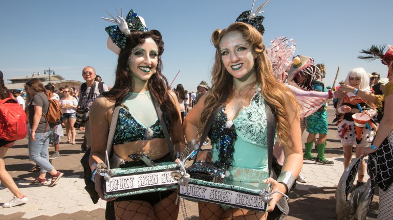 The costumed revelers swished a collective fin along Surf Avenue and the Coney Island boardwalk on a sunny day, a vast improvement over last year’s showers.