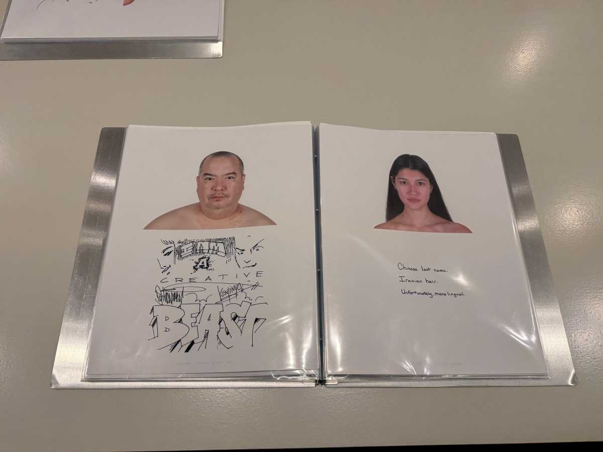 Outside of the plaques surrounding the room are two beautifully painted koi fish on the opposite side of each wall, adding just a small pop of red and black in the otherwise blank space. At the center of the room stand two white folding tables featuring an array of books with even more hapa individuals Fulbeck has documented in his years of work. Perhaps one day, these individuals, too, will have the opportunity to reflect on how their identities have changed over time.