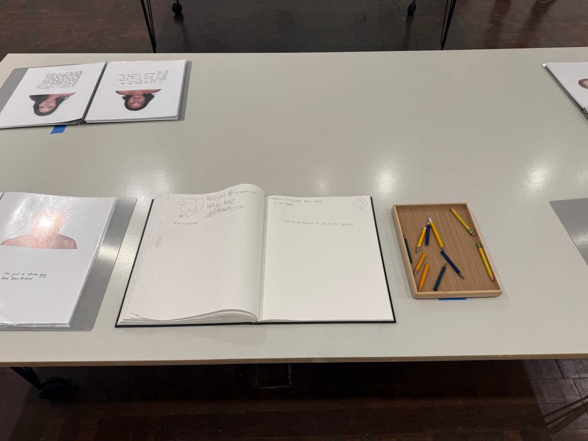 While flipping through these books, visitors eventually come across an empty book with mostly blank pages, sitting next to a tray of pencils. Here, visitors are invited to share their own identities – whether they identify as hapa, mixed race, or something else entirely.
