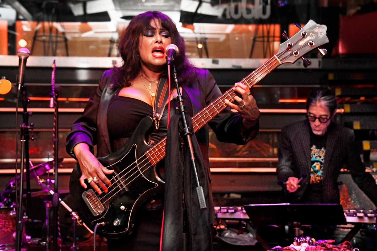 Her musical experience up to then had consisted of playing the piano and violin, but she didn’t take either seriously. At one point, she thought she’d play the drums, but when the desired drum kit didn’t show up for Christmas — she got a practice pad instead — she thought, “I guess I’ll try the bass, it’s interesting.”