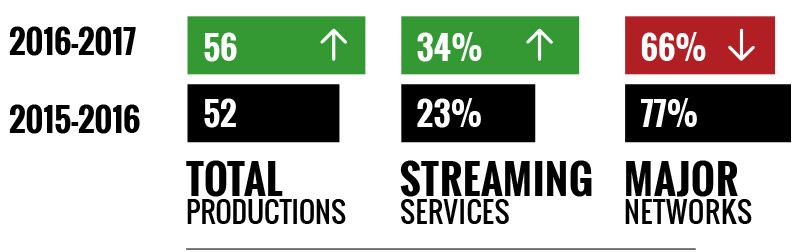 In an industry still largely dominated by major networks, streaming services were behind 19 of the record-breaking 56 productions that chose one of the five boroughs as their filming backdrop during the 2016-2017 season, according to the Mayor’s Office of Media and Entertainment (MOME).