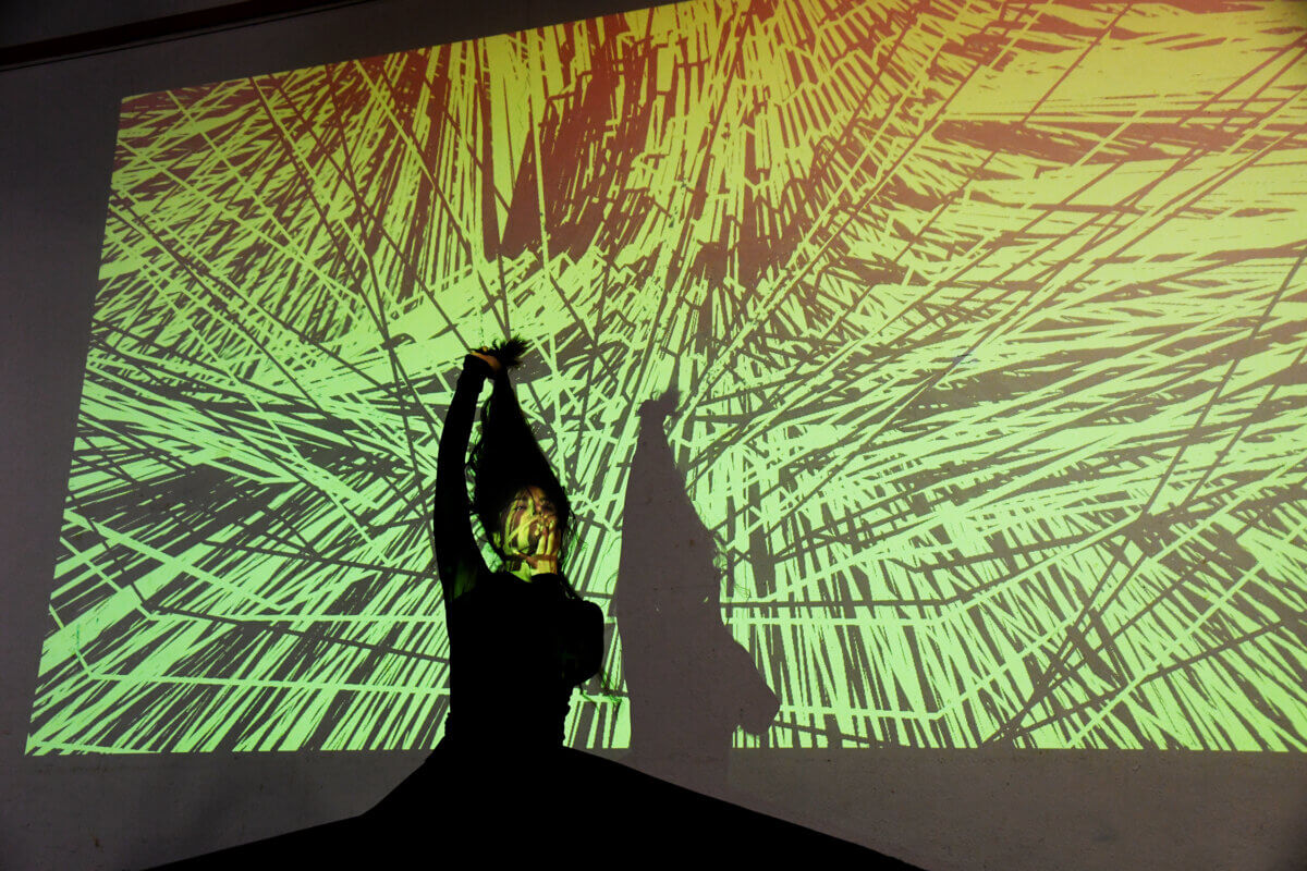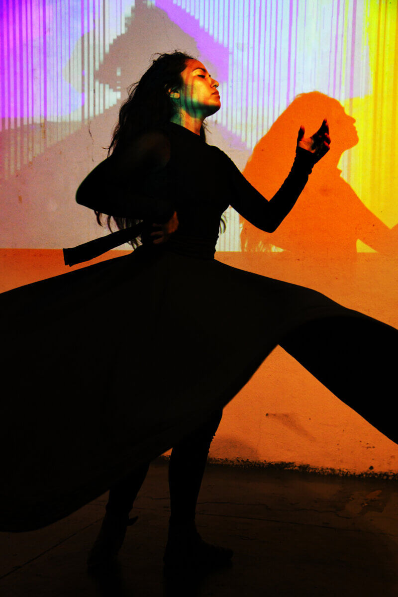 Perez’s sister Claudia has been collaborating with her for years and, while she doesn’t twirl herself, she notes that there is a spirituality that guides her imagery as well as she creates the projected images in real time.