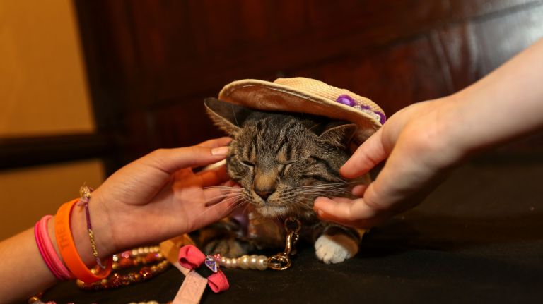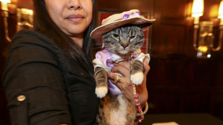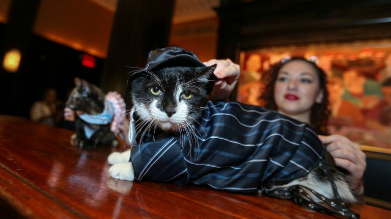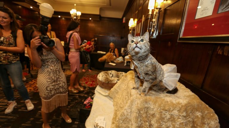 The feline guys and dolls were dressed in their Prohibition-era best to honor the hotel’s 1920s history, when people like George S. Kaufman, Dorothy Parker and Harpo Marx could be found at the hotel’s “roundtable.”