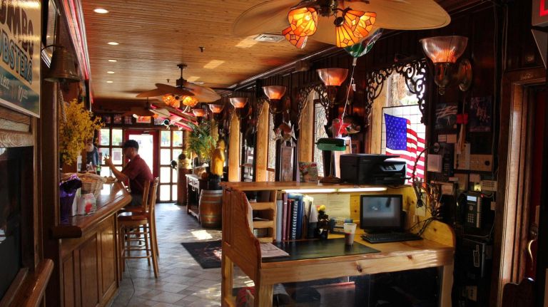 City Island Lobster House left of the bridge at 691 Bridge St. The seafood restaurant offers many fish dishes and a mean Lobster House Crab and Lobster Feast. The laid-back atmosphere and outdoor seating is a nice way to take advantage of the remaining time on the island. ” data-id=”132945512″ data-link=”https://www.amny.com/wp-content/uploads/2019/10/6218_image.jpg” class=”wp-image-1.32945512″/>Photo Credit: Corey Sipkin -