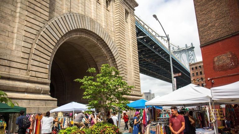 Brooklyn Flea pops up at DUMBO’s Manhattan Bridge Archway with about 80 vendors, April through October. Pick up vintage outfits, antique doodads, locally made home goods and flowers, and grab a snack from any one of its food vendors. If you make it to the Archway on any other day, it’s likely something will be going on there. The DUMBO BID regularly hosts events, from live music to screenings and more. Just check its schedule at https://dumbo.is/happening. ” data-id=”135018604″ data-link=”https://www.amny.com/wp-content/uploads/2019/10/6011_image.jpg” class=”wp-image-1.35018604″/>Photo Credit: Brooklyn Flea & Food -
