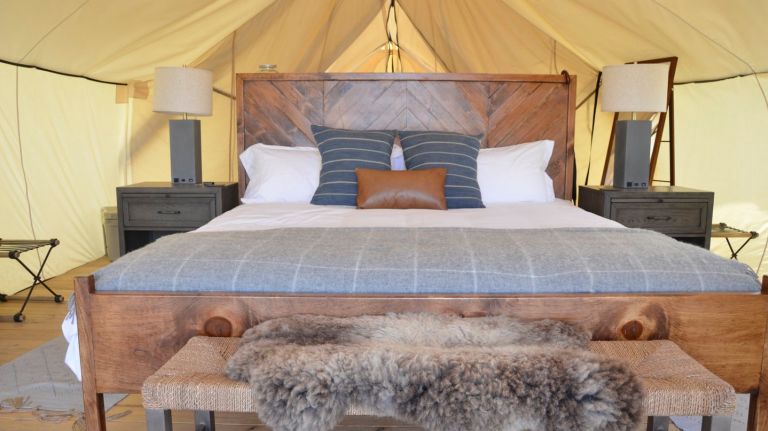 Those who can afford $450 to $650 per night will get to stay in the “Summit” tents, which house a king or two single beds with 1,500 thread-count sheets, a down comforter and “designer-curated” blankets. Don’t worry about your phone losing battery power; there is electricity and bedside sockets at your disposal. And there’s no sharing a latrine or shower with strangers. Each Summit tent has its own fancy bathroom with a rainshower head and an actual porcelain toilet. It literally is a hotel room set in the great outdoors — you even get free breakfast and a s’mores kit.