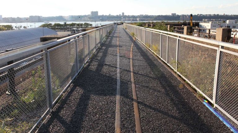 One of the first things you notice may be the trains below (a fitting sight, given the park’s history), but as you walk along the frontier, be sure to look to the west, where you’ll get the most accurate glimpse of the natural state the rail line was left in after the trains stopped running in 1980, full of wild plant life.