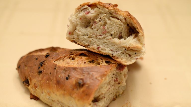 A family business open since 1928, Mazzola Bakery at 192 Union St., transferred from one family (the Mazzolas) to another (the Caravellos) in 1980. The bakery is predominantly known for its lard bread, made with Genoa salami, provolone cheese, black pepper and prosciutto. The variety of breads includes pane Italiano, pictured, an artisanal bread made with white flour and wheat and baked in a brick oven.