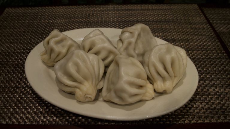 These dumplings are filled with broth and relatively lean ground beef, instead of the fatty pork typically found farther east. Their skin is thicker, making their folds as voluptuous as those of heavy fabric curtains.