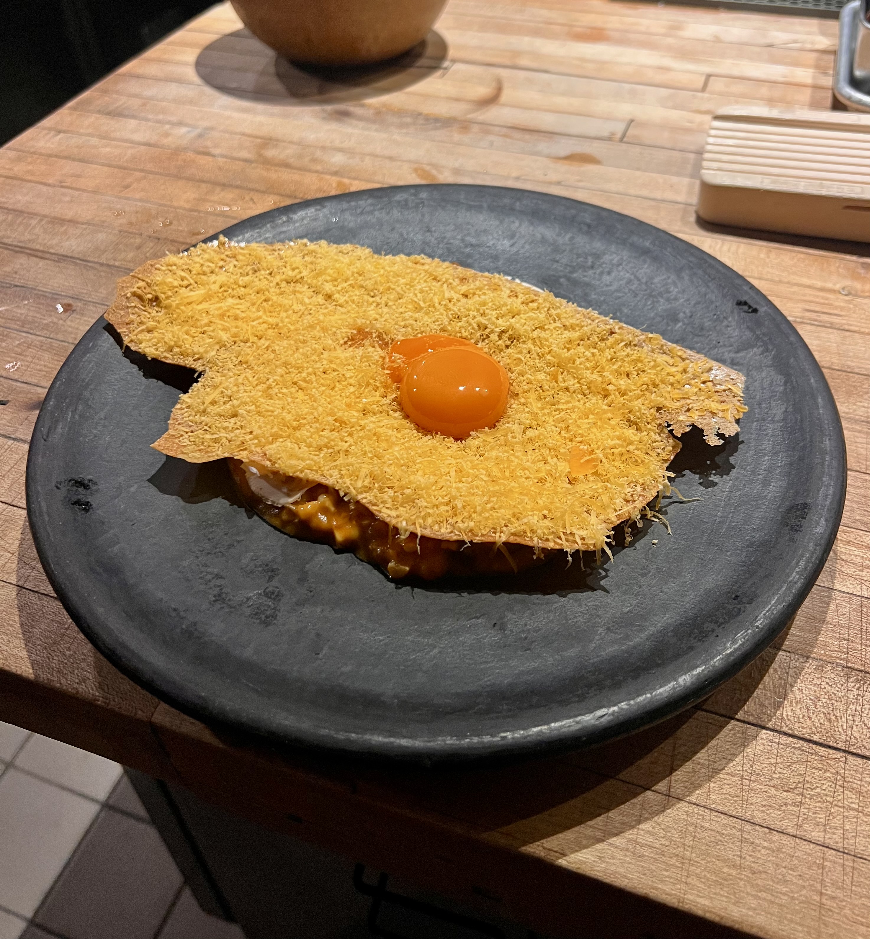 He was right. Standing in the kitchen, I had no idea I wanted pepper-glazed carpaccio or a raw egg yolk on top of a crisped tortilla. And it was perfect.