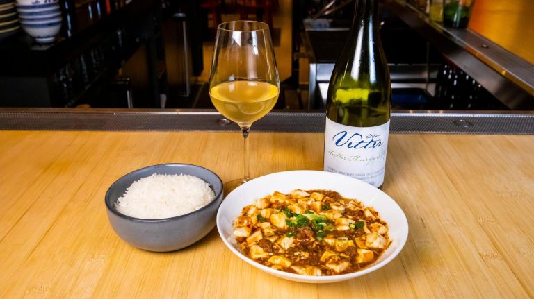 This white is made with Müller-Thurgau grapes and has a mineral edge with notes of crisp honeysuckle. A harmonious balance is created when paired with the assertive and spicy flavors of mapo tofu.