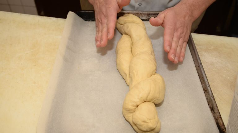 Place the braided bread onto a baking sheet lined with parchment paper.