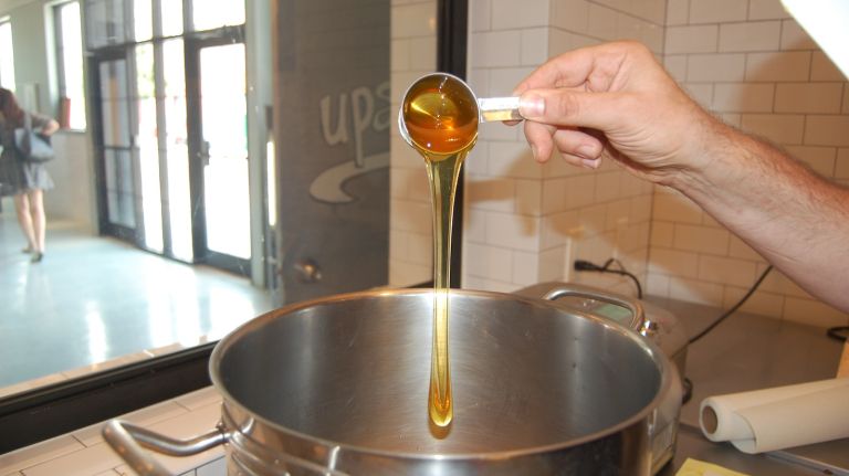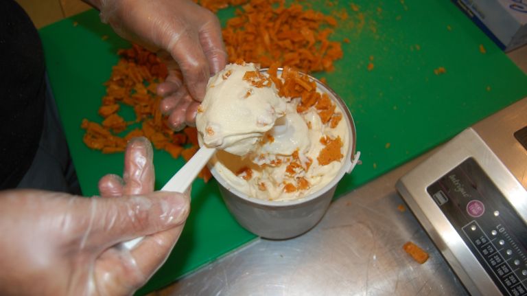 Transfer the ice cream to a storage container, like a tupperware, and fold in the pieces of honeycomb candy as you do. Use as much of the candy as you want; you won’t necessarily need the whole batch. (Save the rest for later!) Serve immediately – it will be like soft serve – or harden in your freezer for 8 to 12 hours for a more scoopable ice cream.Recipe has been adapted from “Ample Hills Creamery Cookbook,” by Brian Smith and Jackie Cuscuna with Lauren Kaelin.
