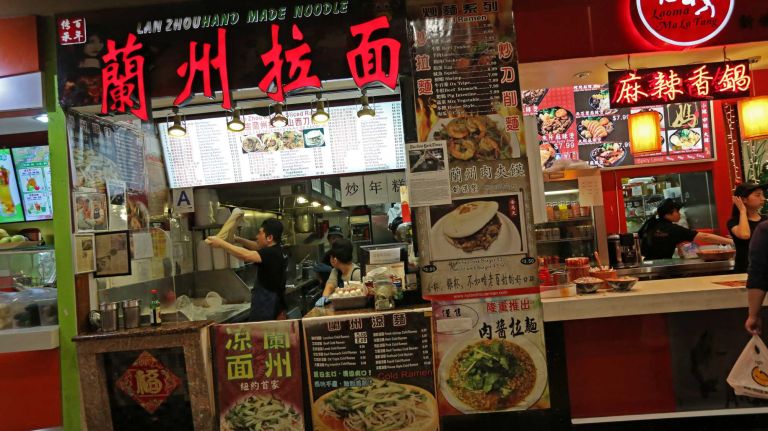 Make your way through the stalls in New World Mall food court to the down escalator; at the bottom, turn left twice and head to the back corner stall, emblazoned with a lighted sign of red Chinese characters. If you’re lucky, they’ll be making noodles: watch the transformation of dough as the noodles are repeatedly divided and stretched the length of the noodle maker’s arm span. Don’t just watch, though: eat.” data-id=”110422392″ data-link=”https://www.amny.com/wp-content/uploads/2015/05/image-167.jpg” class=”wp-image-1.10422392″/>Photo Credit: Linda Rosier -