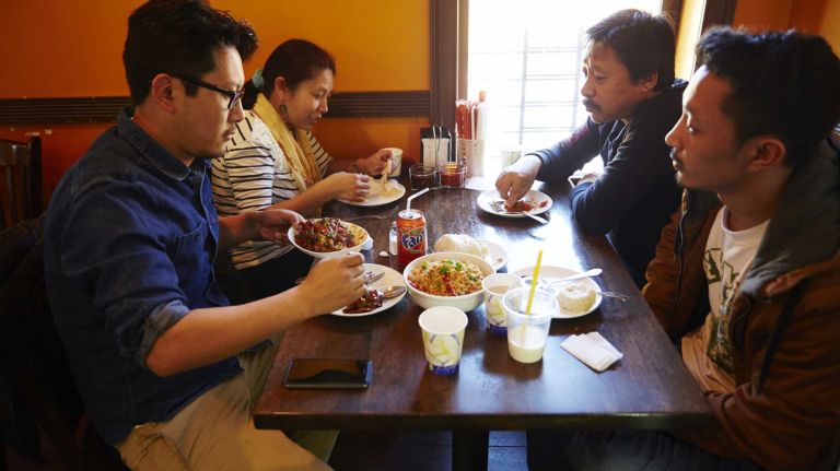 Pictured: Nawang, Tsewang, Tsomo, and Phurbu from Jackson Heights linger over their meal at the Tibetan restaurant Phayul in Jackson Heights, Queens on April 11, 2015.” data-id=”110422411″ data-link=”https://www.amny.com/wp-content/uploads/2019/10/10043_image.jpg” class=”wp-image-1.10422411″/>Photo Credit: Yvonne Albinowski -
