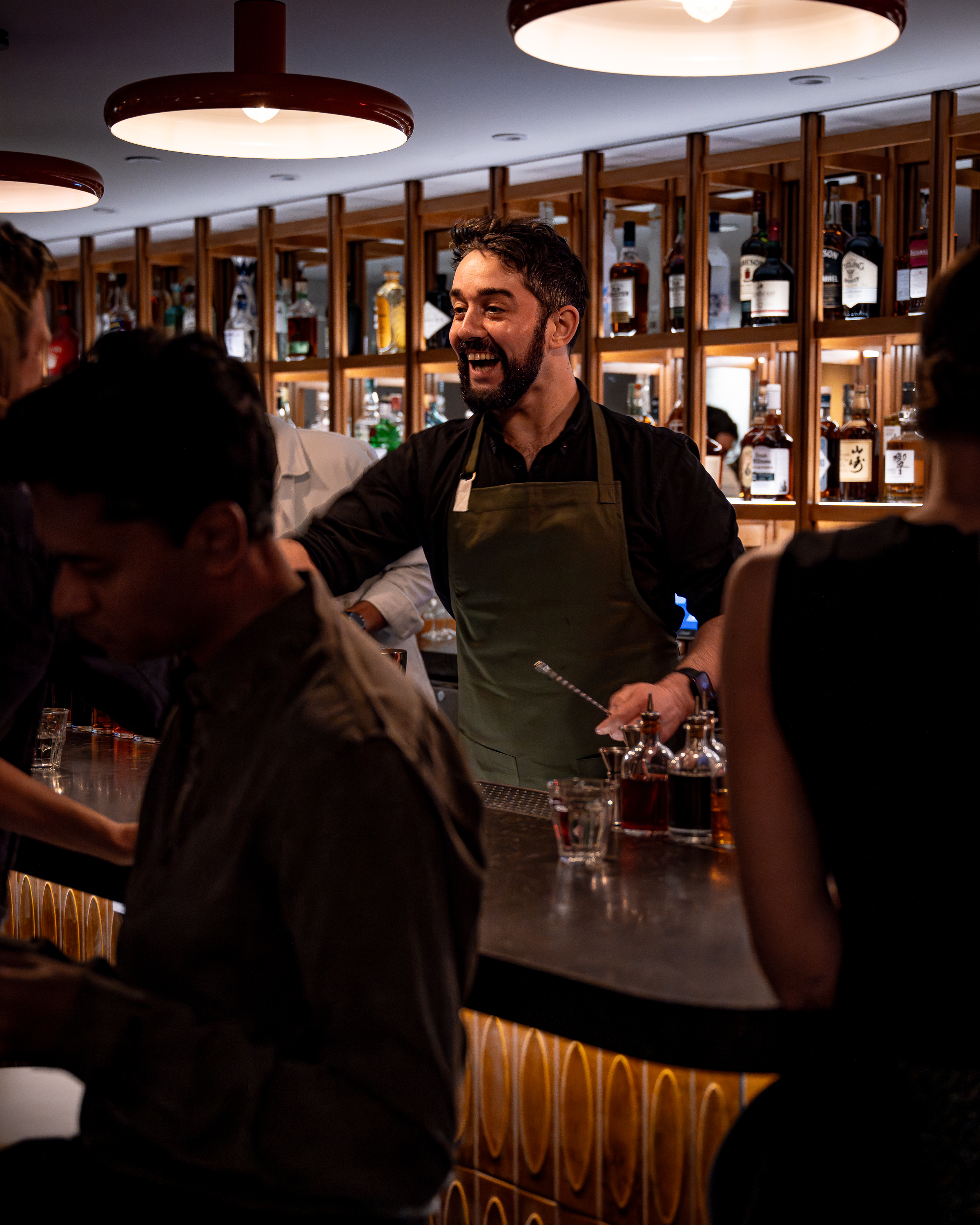 A bright orange door on 30th Street, just off Park Avenue South, ushers you down a flight of stairs into a bar that immerses you in a world of intimate design, natural materials, and soft tones—an ode to the legacy of the timeless “Manhattan Bar.”