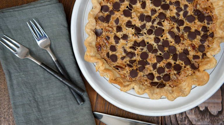 3. Scrape filling into cooled pie shell and bake until center is just set, 40 to 45 minutes.