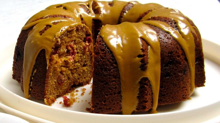 1. Make cake: Preheat oven to 350 degrees. Spray a 12-cup Bundt pan with nonstick cooking spray.