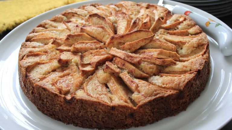 4. Starting around the outer edge of the pan, arrange the apple slices in concentric circles, allowing each row to slightly overlap. Bake, rotating once, until a cake tester comes out clean, about 1 hour.