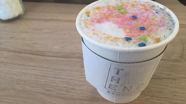 Alongside The End’s cortados and juices, Murphy, who studied at the Institute for Integrative Nutrition, has developed a menu of plant-based, healing lattes made with ingredients like ginger, turmeric, apple cider vinegar and algae. The latter can be found in its bestselling unicorn latte (pictured), which is dusted with edible flowers or sprinkles.
