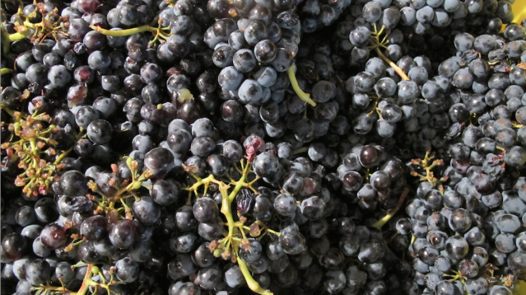These are Syrah grapes, sent to SoHo from Mendocino County in northern California. They are described as peppery, meaty and tannic.