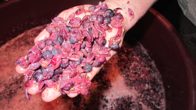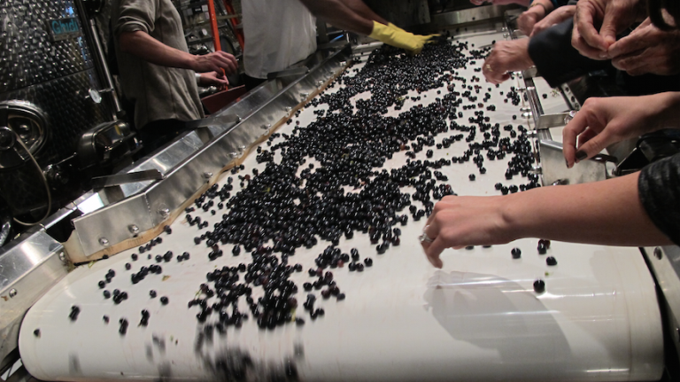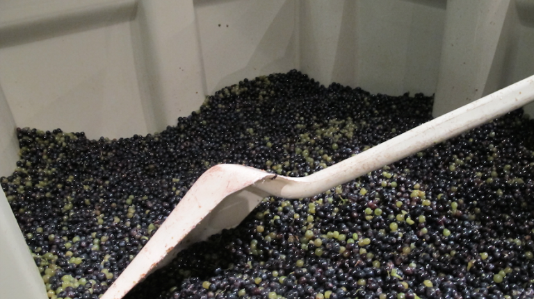 MOG is a winemaker’s term for “material other than grapes.” After going through the destemmer, the grapes are hand-sorted, and any left-behind jacks (that’s a winemaker’s term for bunches of stems), leaves, and sometimes the occasional lizards and insects, are removed, along with any imperfect grapes.