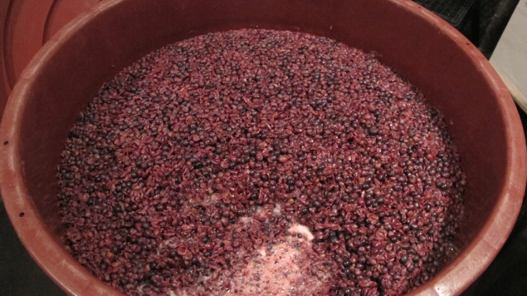 Fermentation is the step in the process that converts sugar to alcohol. Yeast will break down the sugars in the fruit, producing carbon dioxide and alcohol, and pushing the skins to the top. Winemakers call the layer that rises to the top the cap.