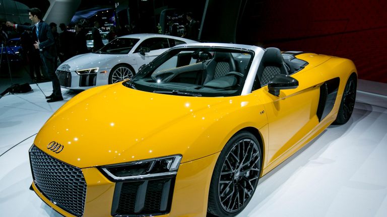 The Audi R8 is on display at the 2016 New York Auto Show’s press preview day at the Jacob K. Javits Convention Center in Manhattan on Wednesday, March 23, 2016.