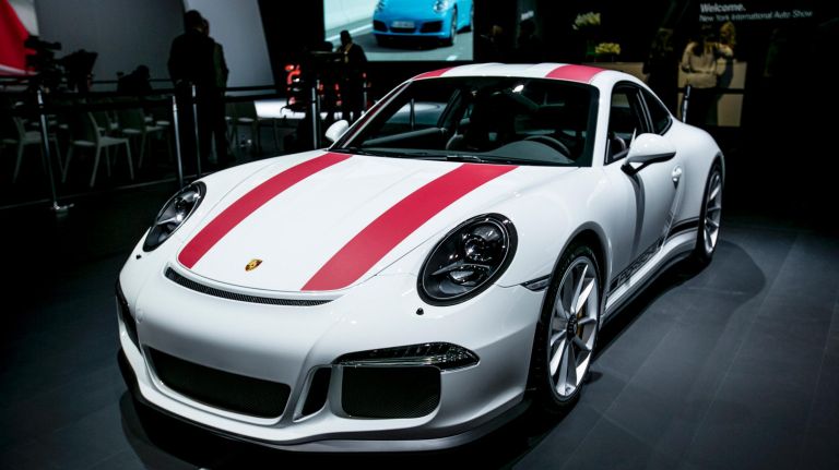 The Porsche 911R is on display at the 2016 New York Auto Show’s press preview day at the Jacob K. Javits Convention Center in Manhattan on Wednesday, March 23, 2016.