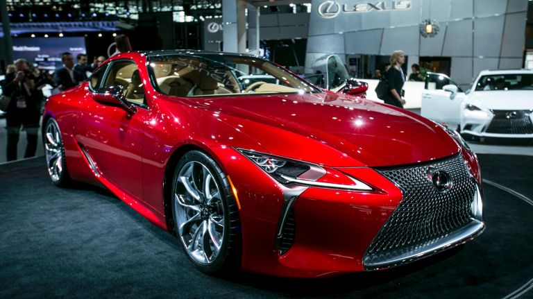 The Lexus LC 500 is on display at the 2016 New York Auto Show’s press preview day at the Jacob K. Javits Convention Center in Manhattan on Wednesday, March 23, 2016.
