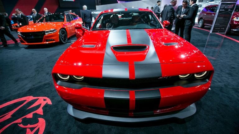 The 2016 Dodge Challenger Hellcat SRT is on display at the 2016 New York Auto Show’s press preview day at the Jacob K. Javits Convention Center in Manhattan on Wednesday, March 23, 2016.