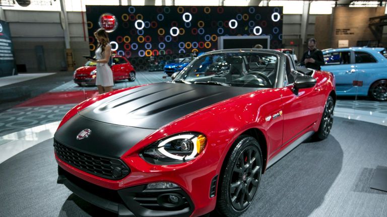 The FIAT 124 Spider is on display at the 2016 New York Auto Show’s press preview day at the Jacob K. Javits Convention Center in Manhattan on Wednesday, March 23, 2016.