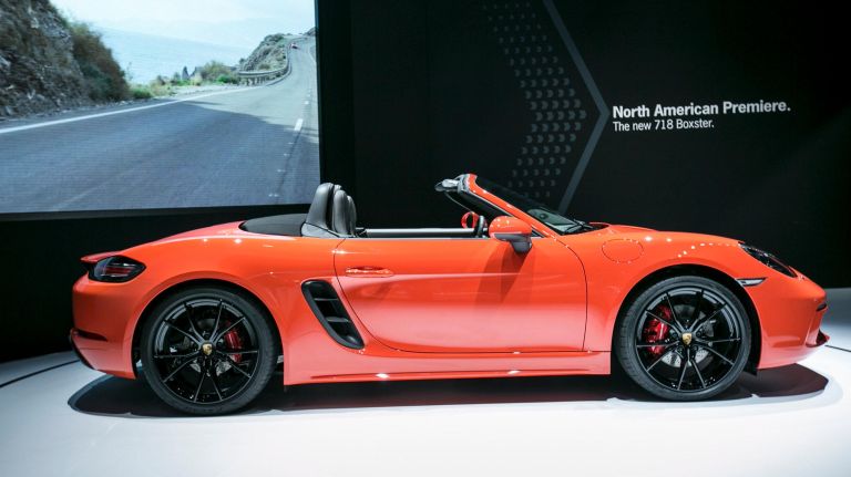 The Porsche 718 Boxster is on display at the 2016 New York Auto Show’s press preview day at the Jacob K. Javits Convention Center in Manhattan on Wednesday, March 23, 2016.