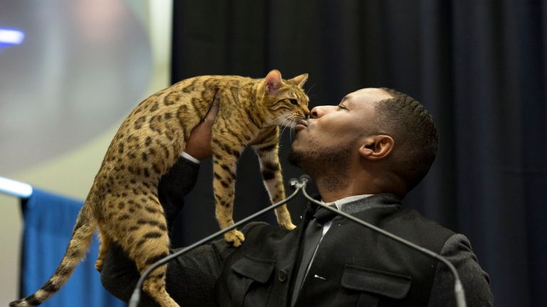 : Jungletrax Abiding Ovation, is 3-year-old, majestic kitty, who looks like a mini leopard, came all the way from Maryland on Monday.