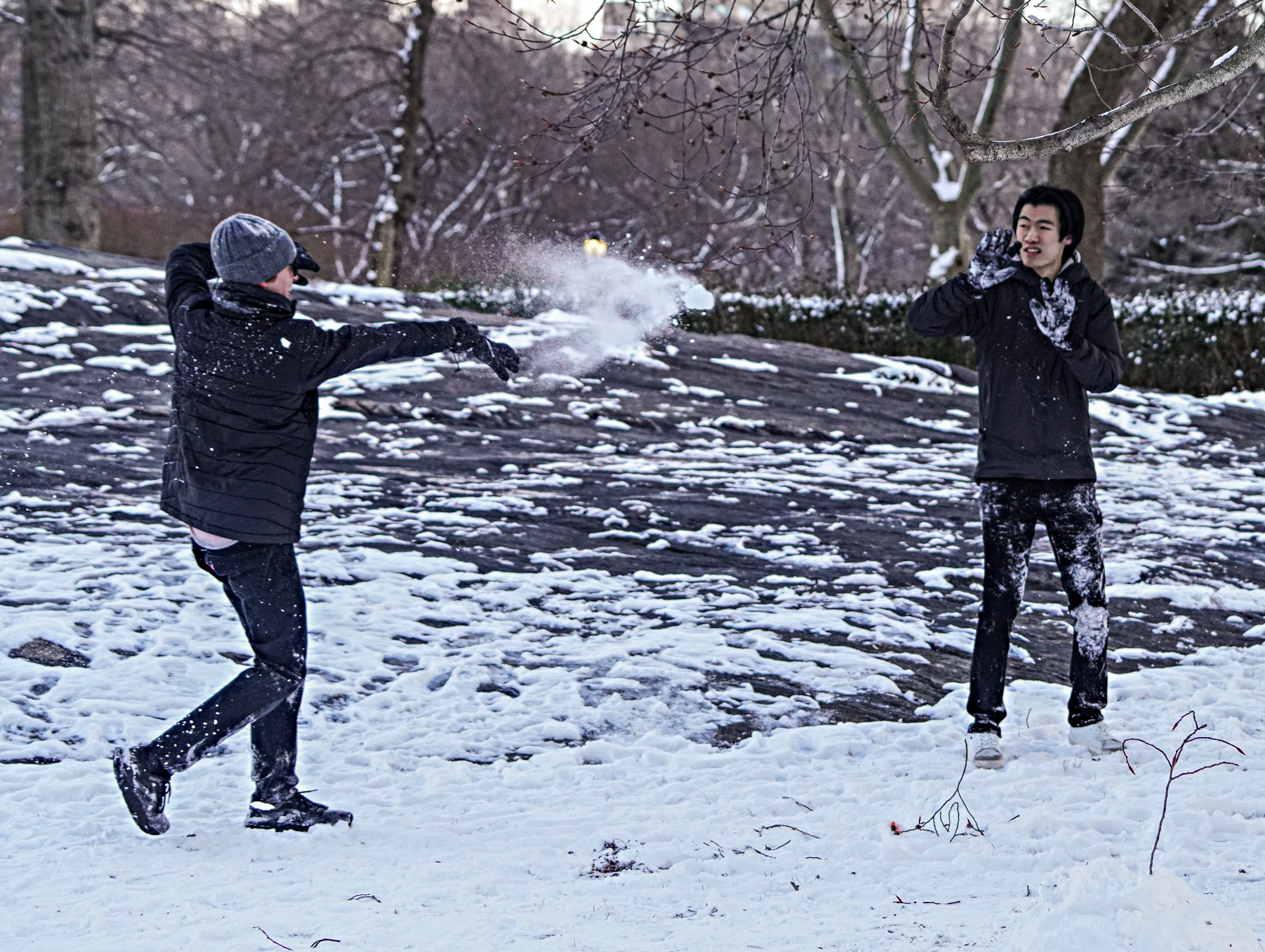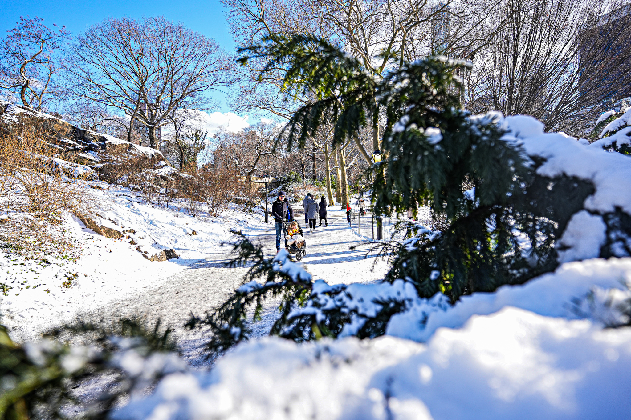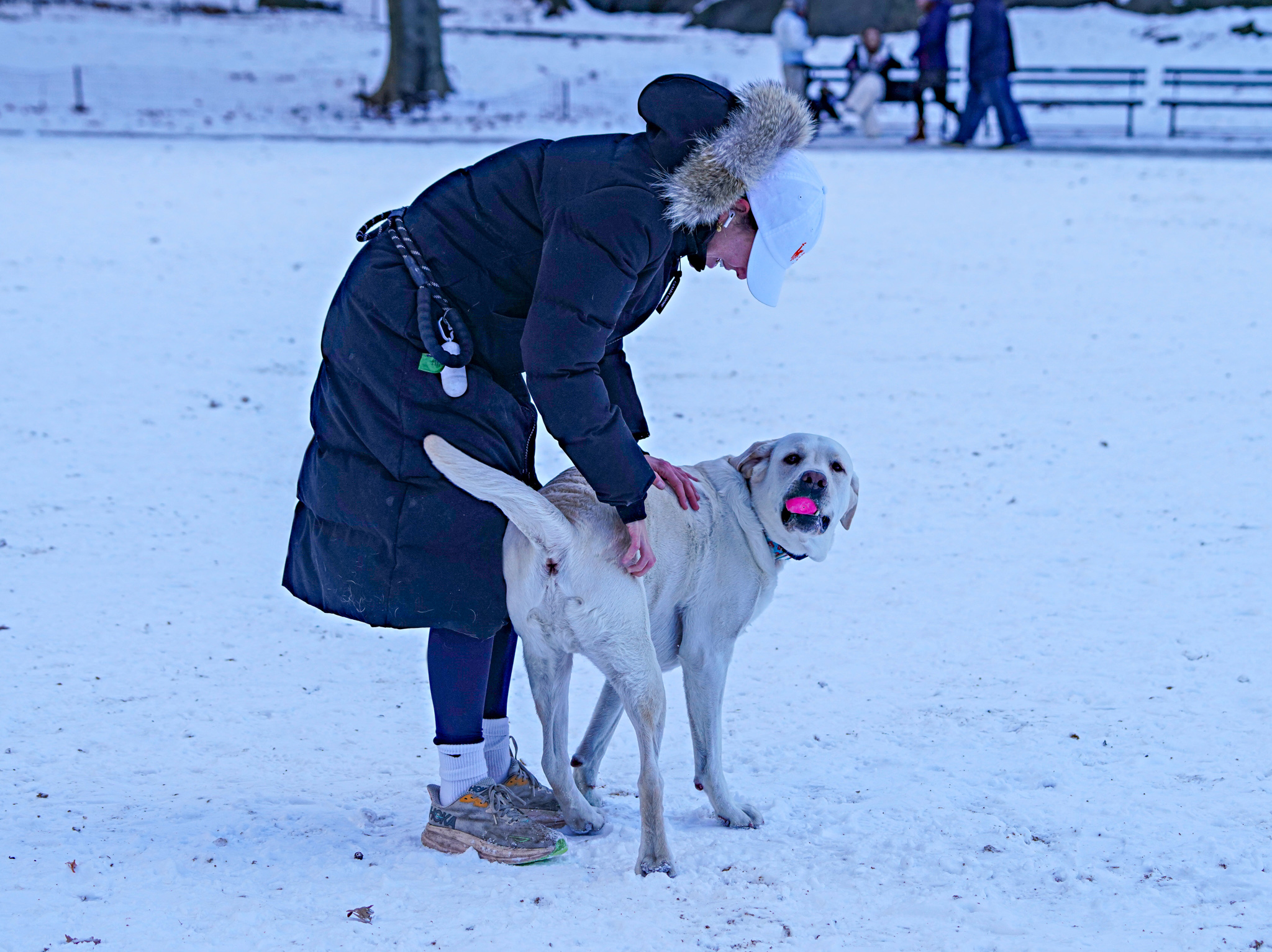 Parkgoers also made their way to the Wollman Rink, holding each other’s hands as they twirled on the ice. Animals also enjoyed the snow, with dogs playing fetch and squirrels getting fed by visitors.