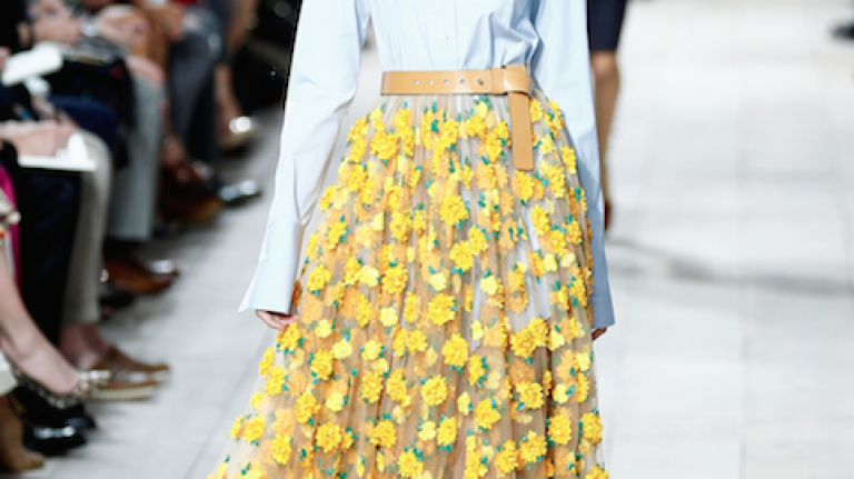 The romantic spring/summer 2015 collection wowed with a mix of the glamorous and the casual– basic, crisp button-downs tucked into sheer skirts with intricate floral appliques, chic dresses with no-fuss pockets.