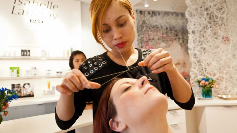“Threading has always been seen as something that’s painful … but it doesn’t have to be like that,” says Umbreen Sheikh, the beauty guru behind it all. Using a precise and almost pain-free technique, organic thread, and high-end skin and makeup products (and throwing in champagne and cookies for good measure), Sheikh proves that to be true.