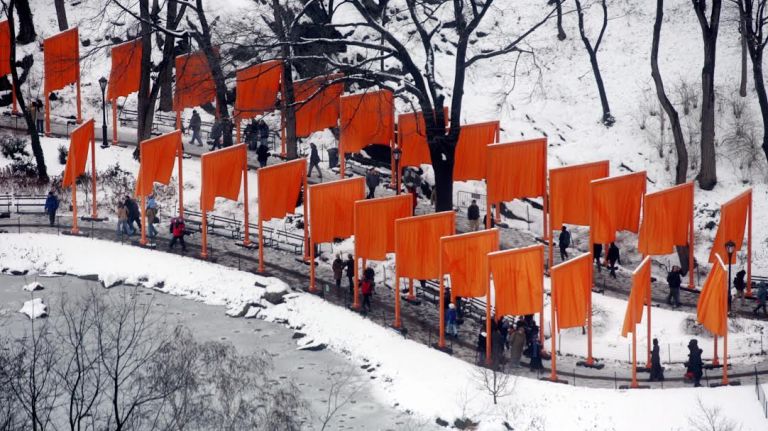 price tag of $21 million (the project was funded through private organizations, not the city, so the exact cost is not known), The Gates was a massive undertaking that used more than 1 million square feet of nylon and 5,300 tons of steel over 23 miles of Central Park. And all of it orange. While it ended up being massively popular in its 16-day run, it was also a frequent punchline. ” data-id=”110167413″ data-link=”https://www.amny.com/wp-content/uploads/2019/10/10361_image.jpg” class=”wp-image-1.10167413″/>Photo Credit: Newsday / ARI MINTZ -