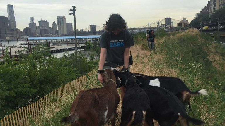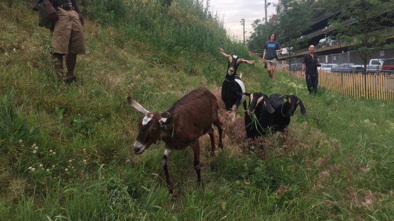 The goats, from Rhinebeck-based Green Goats (where the Prospect Park goats came from), will start off with about 1,000 square feet of land. If things go well, which McMackin said should be apparent in a few weeks, they will move on to the larger area.