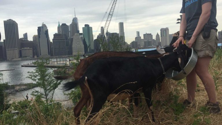 The latest pack of goats to come to Brooklyn this summer took over the untamed uplands over Pier 3 in Brooklyn Bridge Park as part of a two month pilot program. Their counterparts started munching away last month in the Sandy-ravaged parts of Prospect Park.
