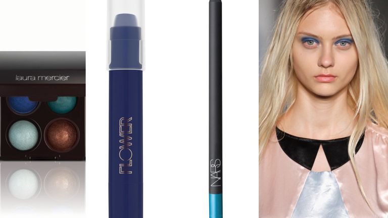 From left: Laura Mercier Baked Eye Colour Quad in Summer in St. Tropez, $44; at Macy’s, 151 W. 34th St., 212-695-4400. Flower Eyeshadow Chubby Stick in Dark Side of the Blue, $7.98; at walmart.com. NARS Larger Than Life Long-Wear Eyeliner in Khao San Road, $24; at NARS, 124 Prince St., 646-356-0423