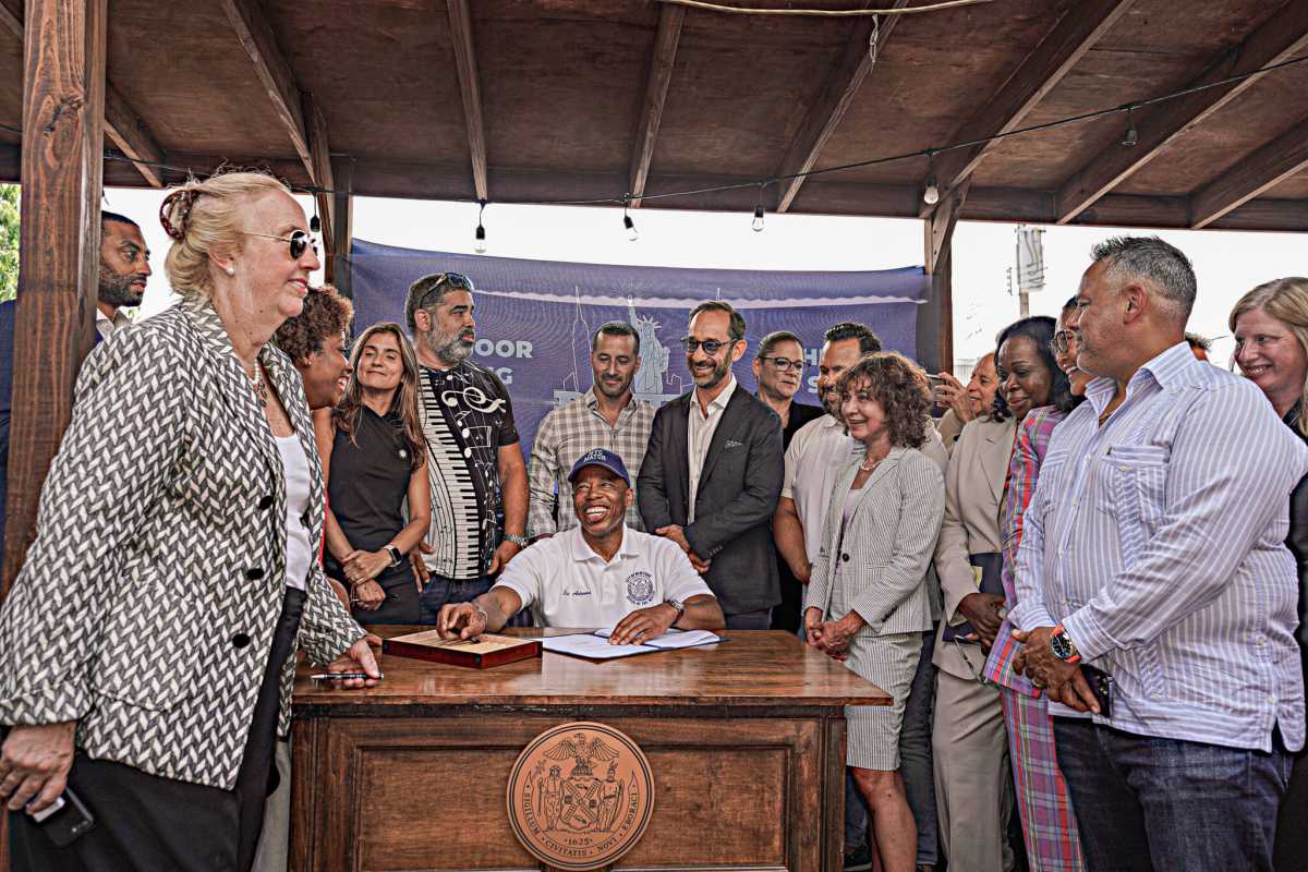 “Outdoor dining will be here forever,” Mayor Eric Adams exclaimed as he signed a bill on Wednesday that will extend curbside eating across the five boroughs.