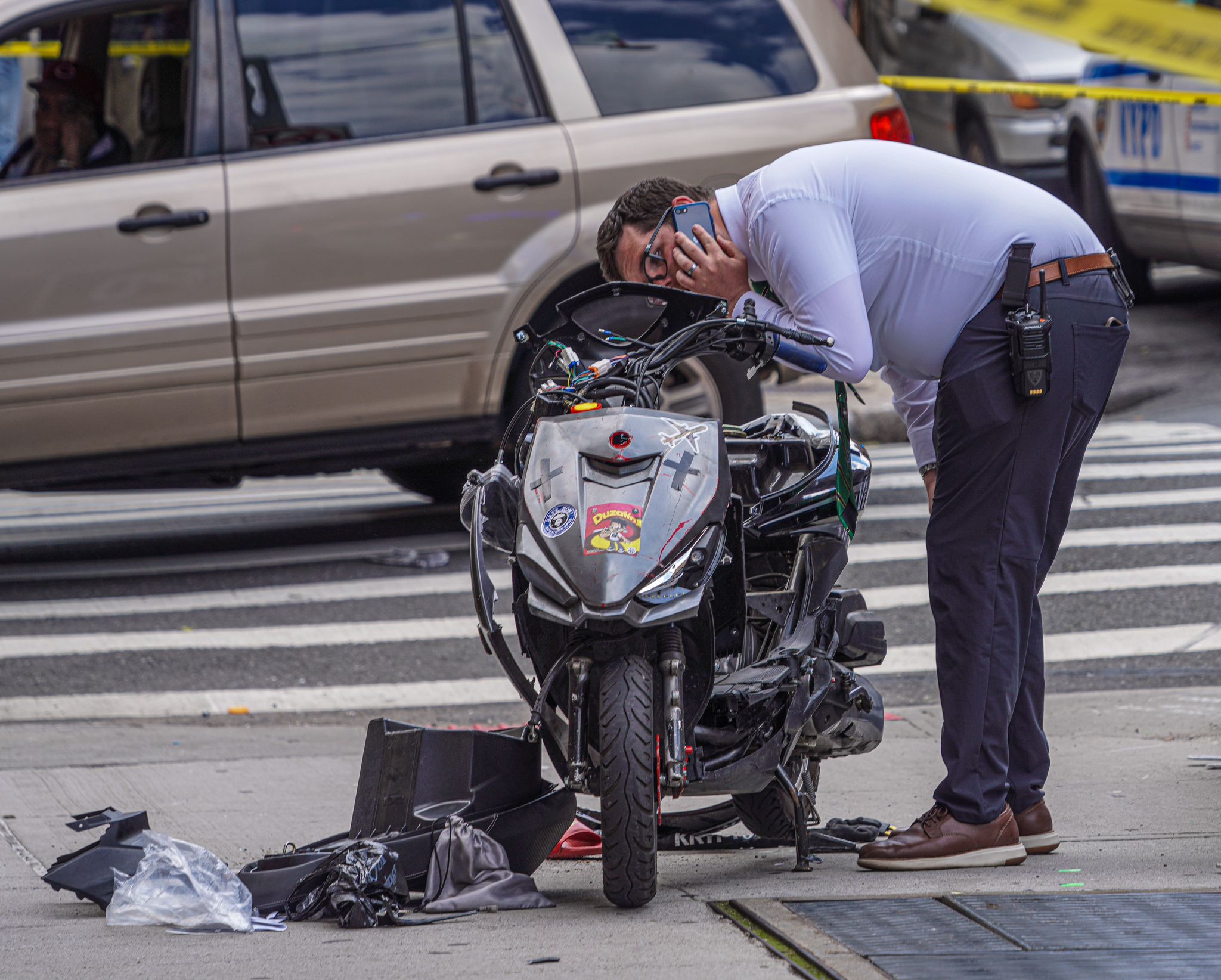 Locals gathered in disbelief around the debris-covered scene on West 192nd Street and University Avenue Tuesday afternoon while police combed the site as part of the ongoing investigation. Others at the scene wept profusely, as officers examined heaps of twisted metal.